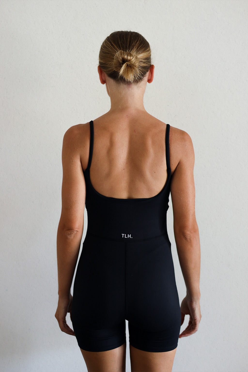 Este entero realza la figura como un vestido pegado al cuerpo, pero con la comodidad de un traje deportivo pensado para actividades intensas.