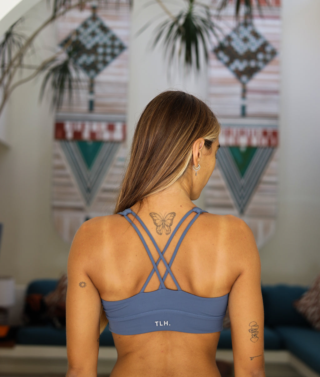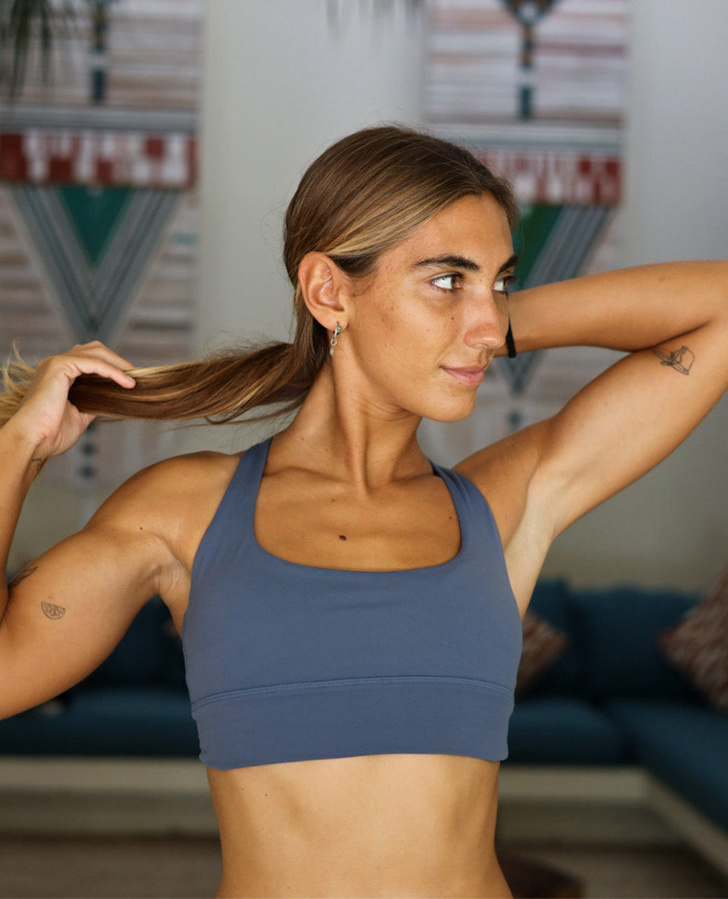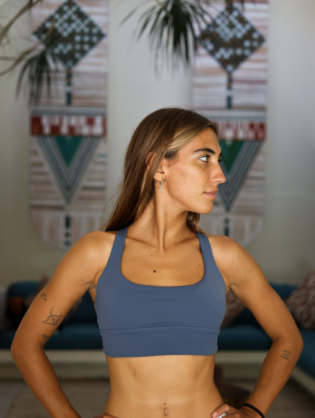 El top deportivo para mujer Ru, corto y fresco con tiras finas que se cruzan en la espalda, es la opción ideal de ropa deportiva mujer para quienes buscan ligereza y estilo sin perder soporte.